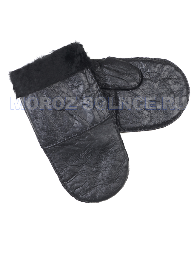 Черные варежки с подчеркнутой структурой натуральной кожи.
