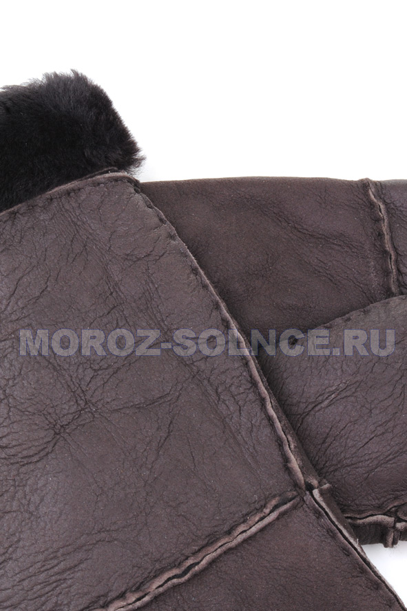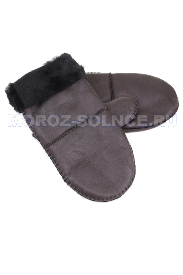 Коричневые варежки из мягкой матовой кожи с натуральным мехом.
